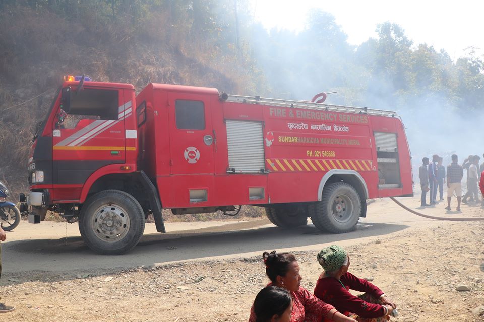 सुन्दरहरैचा नगरपालिका र इटहरी उपमहानगरपालिका वाट आएको २ वटा दमकल, नेपाल प्रहरी , नेपाली सेना तथा स्थानियको सहयोगमा करिव एक घण्टा पछि आगो नियन्त्रणमा लिइएको थियो । आगलागिवाट करिव २५ लाख बरावरको क्षति भएको लेटाङ नगरपालिका वडा नं ६ का अध्यक्ष जंगविर तामाङले जानकारी दिए ।