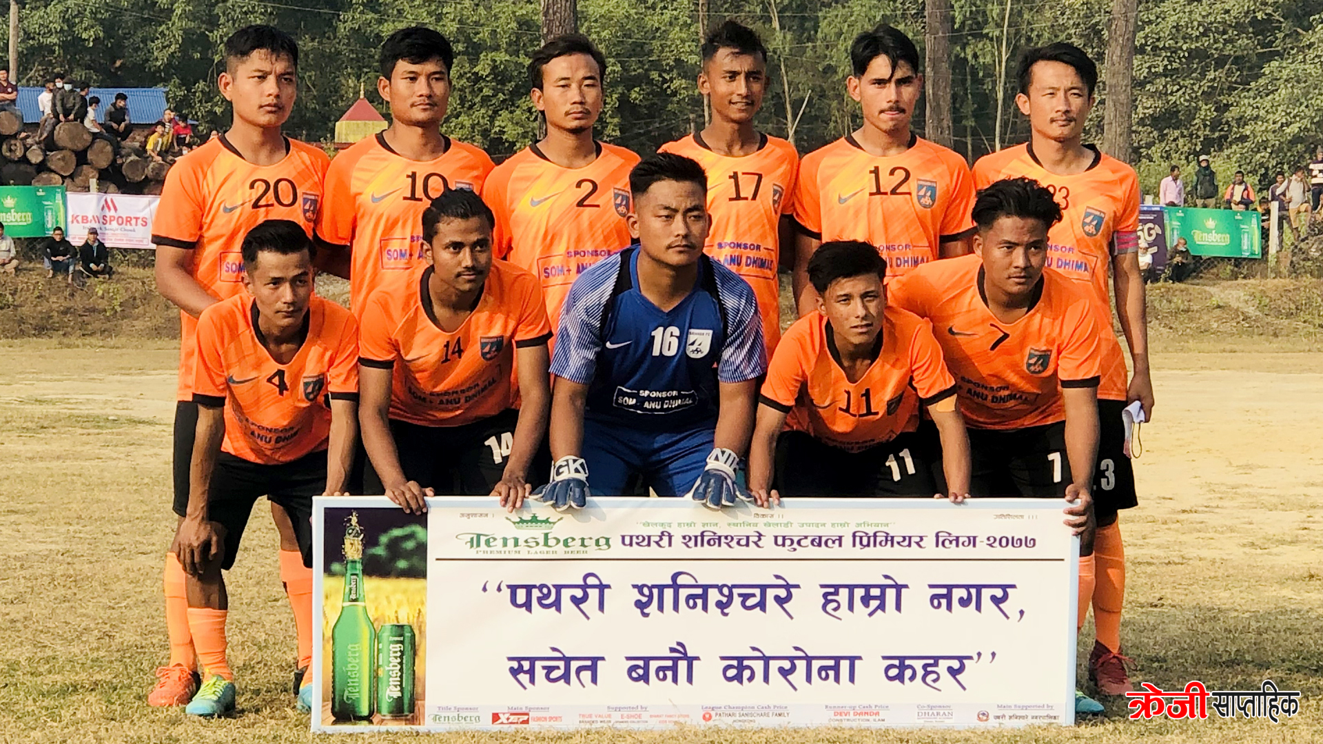 टेन्सबर्ग पथरी शनिश्चरे फुटबल लिगको उद्घाटन खेलमा शिखर र हेमा असले अंक बाँडे